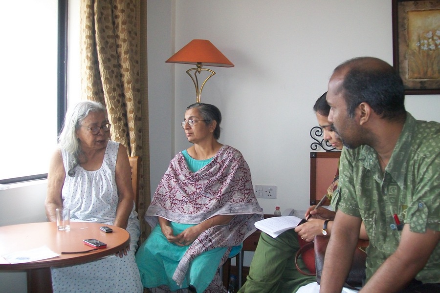(ಅಜಿದಾ ಜೊತೆ ಮಾತನಾಡುತ್ತಿರುವ ಮಹಾಶ್ವೇತಾ ದೇವಿ)