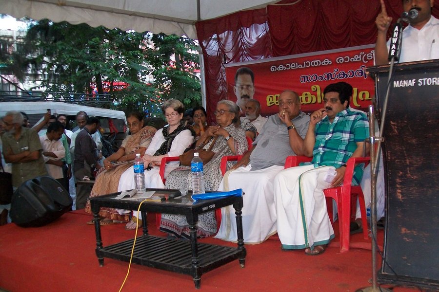 ಜ್ಞಾನಪೀಠ ಪ್ರಶಸ್ತಿ ಪಡೆದ ಬಂಗಾಳಿ ಲೇಖಕಿ ಮಹಾಶ್ವೇತಾ ದೇವಿ ಅವರು, ಕೇರಳದ ಒಂಜಿಯಂನಲ್ಲಿ, ‘ರೆವಲ್ಯೂಷನರಿ ಮಾರ್ಕ್ಸ್ ವಾದಿ ಪಾರ್ಟಿ’ಯ ಸ್ಥಾಪಕ ಟಿ.ಪಿ. ಚಂದ್ರಶೇಖರನ್ ಕೊಲೆಯಾದ ಸುದ್ದಿ ಕೇಳಿ ಅವರ ಮನೆಗೆ ಭೇಟಿ ನೀಡಲು ಸಿದ್ಧರಾಗಿದ್ದರು. ಅವರು ಉಳಿದುಕೊಂಡಿದ್ದ ಹೋಟೆಲ್ಗೆ ಒಬ್ಬರಾದ ಮೇಲೆ ಒಬ್ಬರು ಸಂದರ್ಶಕರು ಬರುತ್ತಲೇ ಇದ್ದುದರಿಂದ ಹೊರಡುವುದು ತಡವಾಗುತ್ತಿತ್ತು.