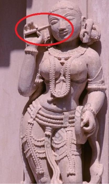 ಗುಜರಾತಿನ ಪಾಲಿಟಾನದ ಒಂದು ಶಿಲ್ಪ ಅಂತರ್ಜಾಲದಲ್ಲಿ ಸಿಕ್ಕಾಪಟ್ಟೆ ಓಡಾಡುತ್ತಾ ಇರುತ್ತದೆ. ೧೦೦೦ ವರ್ಷಗಳ ಹಿಂದೆಯೇ ಜನ ಟ್ಯಾಬ್ಲೆಟ್ ಬಳಸುತ್ತಿದ್ದರು, ಹೆಣ್ಣುಮಕ್ಕಳು ಮೊಬೈಲ್ ಫೋನ್ ಬಳಸುತ್ತಿದ್ದರು ಎಂದು. ( ಚಿತ್ರ ೧). ಅಸಲಿ ವಿಷಯ ಅಂದರೆ, ಆಕೆ ಪತ್ರಲೇಖೆ. ಅವಳು ಬರೆಯುತ್ತಿದ್ದಾಳೆ. ಮತ್ತೊಂದು ಬದಿಯಿಂದ ತೆಗೆದ (ಚಿತ್ರ ೨) ಚಿತ್ರದಲ್ಲಿ ಅದು ಫೋನಲ್ಲ ಅಂತ ತಿಳಿಯುತ್ತದೆ. ಅವಳು ಕಣ್ಣಿಗೆ ಕಾಡಿಗೆ ಹಚ್ಚುತ್ತಿದ್ದಾಳೆ ಅಂತ ಎಂತಹವರಿಗೂ ತಿಳಿಯುತ್ತದೆ. ಬೇಕು ಅಂತಲೇ ತಪ್ಪು ಕಲ್ಪನೆ ಬರುವ ಕೋನದಿಂದ ಚಿತ್ರ ತೆಗೆದು ವೈರಲ್ ಮಾಡುತ್ತಾರೆ.