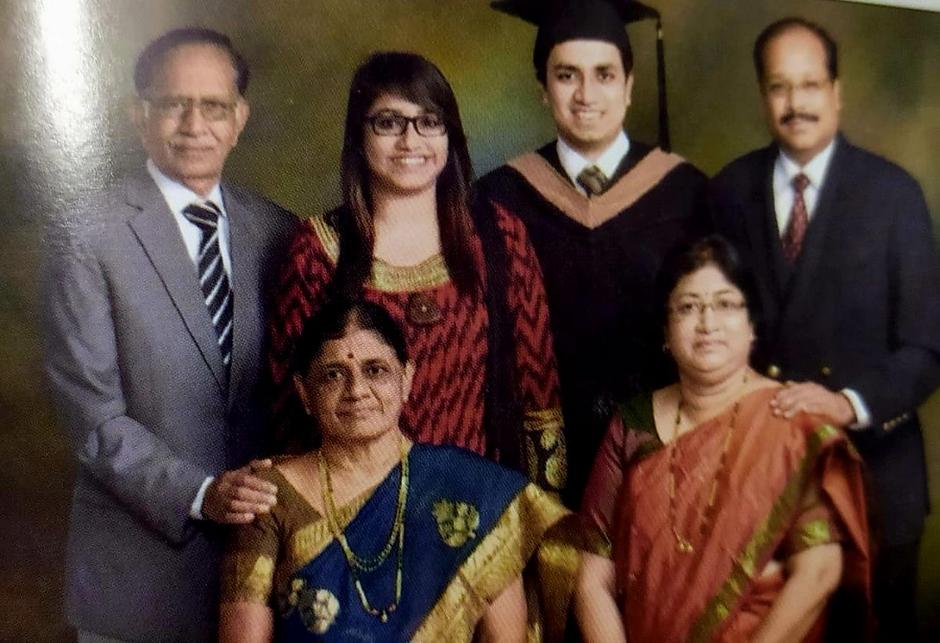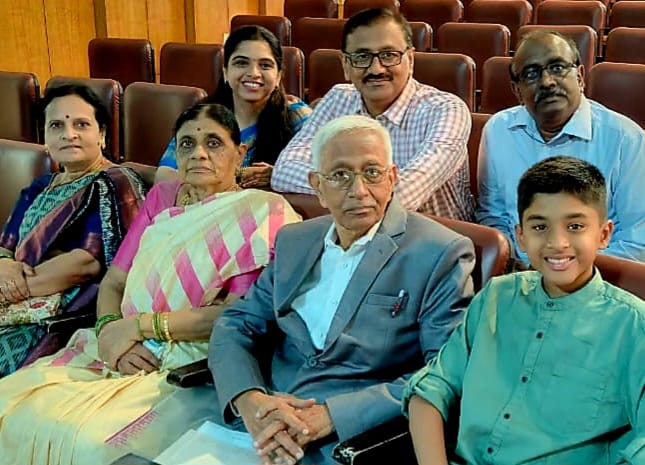 (ಸಿಂಗಾಪುರದಲ್ಲಿ ಪತ್ನಿ ಸರ್ವಮಂಗಳಾ, ಮಗಳು ಕವಿತಾ, ಮೊಮ್ಮಗಳು ಆರಾಧನಾ, ಮೊಮ್ಮಗ ಅಭಿಲಾಷ ಮತ್ತು ಅಳಿಯ ವಿಜಯಕುಮಾರ ಬದಾಮಿ ಅವರೊಂದಿಗೆ)