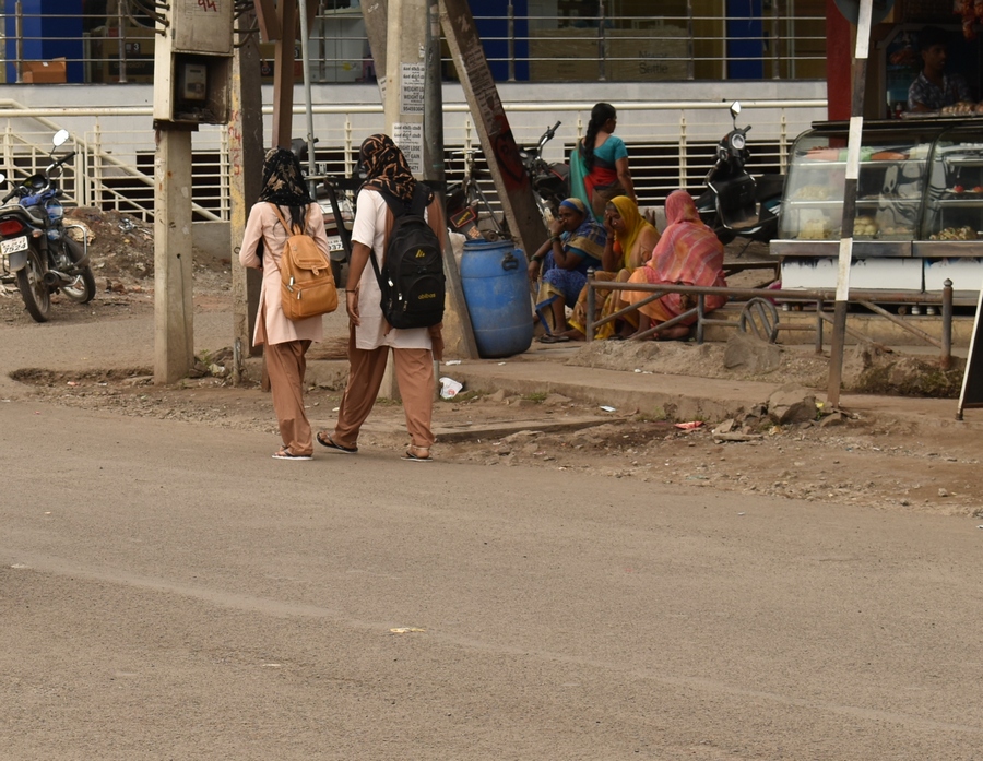 ಒಬ್ಬ ಬಾಲಕಿ ಸಲ್ವಾರ ಕಮೀಜ್ ಯುನಿಫಾರ್ಮ್ ಹಾಕಿಕೊಂಡು ಇನಾಮದಾರ ತೋಟದಿಂದ ಮದ್ದಿನ ಖಣಿ ದಾಟಿ ನಮ್ಮ ಮನೆಯ ಮುಂದೆ ಹಾಯ್ದು ಶಾಲೆಗೆ ಹೋಗುತ್ತಿದ್ದಳು. ಬಹುಶಃ ಅವಳು ಉರ್ದು ಶಾಲೆಯ ವಿದ್ಯಾರ್ಥಿನಿಯಾಗಿರಬಹುದು. ಸಲ್ವಾರ್ ಬಿಳಿಯದಿದ್ದು ಕಮೀಜ್ ತಿಳಿನೀಲಿ ಬಣ್ಣದ್ದಿತ್ತು. ಅವಳು ನಾನು ನೋಡಿದ ‘ಶಾಲೆಗೆ ಹೋಗುವ ಮೊದಲ ವಿದ್ಯಾರ್ಥಿನಿ’ ಆಗಿದ್ದಳು. ಅಂದಿನ ಕಾಲದಲ್ಲಿ ಹೆಣ್ಣುಮಕ್ಕಳು ಶಾಲೆಗೆ ಹೋಗುವುದೆಂದರೆ ದೊಡ್ಡ ಸಾಹಸವೇ ಆಗಿತ್ತು. ಆ ಬಾಲಕಿ ತನ್ನ ಮುಂದಿನ ದಾರಿಯೊಂದನ್ನು ಬಿಟ್ಟರೆ ಮತ್ತೇನನ್ನೂ ನೋಡುತ್ತಿರಲಿಲ್ಲ. ಒಂದೊಂದು ಸಲ ಅವಳ ಜೊತೆ ಅಜ್ಜ ಇರುತ್ತಿದ್ದರು. ಅವರ ಪೋಷಾಕು ಸೂಫಿಗಳ ಹಾಗೆ ಇತ್ತು. ಇಜಾರ (ಪೈಜಾಮಾ) ಮೇಲೆ ನೆಹರೂ ಶರ್ಟ್ ಮತ್ತು ಶರ್ಟ್ ಮೇಲೆ ಜಾಕೆಟ್ ಹಾಕಿಕೊಳ್ಳುತ್ತಿದ್ದ ಅವರು ಬಿಳಿ ರುಮಾಲು ಸುತ್ತುತ್ತಿದ್ದರು. ಅವರ ಕೈಯಲ್ಲಿ ಛತ್ರಿ ಇದ್ದರೂ ಬಿಚ್ಚುತ್ತಿರಲಿಲ್ಲ.
