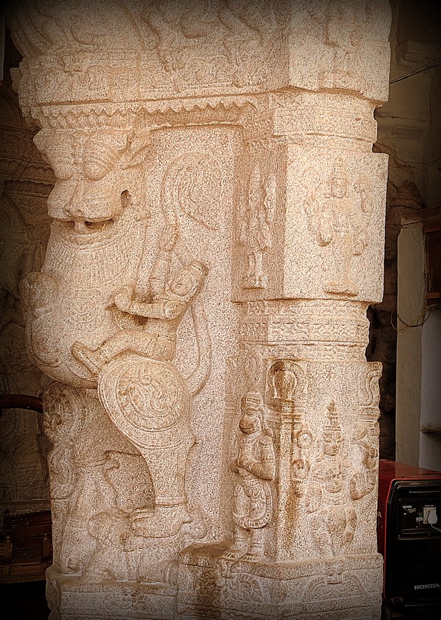ಮೇಲುಛಾವಣಿಗೆ ಆಧಾರವಾದ ಕಂಬಗಳ ಮೇಲೆ ಕಾಲುಮೇಲೆತ್ತಿ ನಿಂತ ಯಾಳಿ, ಕುದುರೆ ಮೊದಲಾದವನ್ನು ಕೆತ್ತಲಾಗಿದೆ. ಅಲ್ಲಲ್ಲಿ ಕಾಣುವ ಮಿಥುನಶಿಲ್ಪ, ಹಂಸ, ಗಜಾಸುರಸಂಹಾರಿ ಶಿವ ಮೊದಲಾದ ಉಬ್ಬುಶಿಲ್ಪಗಳೂ ಸೊಗಸಾಗಿವೆ. ಈ ಪ್ರಾಚೀನ ಸ್ಮಾರಕವನ್ನು ಇನ್ನಷ್ಟು ಮುತುವರ್ಜಿಯಿಂದ ಸಂರಕ್ಷಿಸಲು ಸ್ಥಳೀಯರೂ ಜನಪ್ರತಿನಿಧಿಗಳೂ ಆಸ್ಥೆವಹಿಸಬೇಕಾಗಿದೆ.