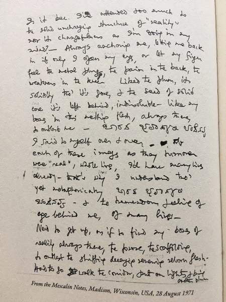 ಕನ್ನಡದ ಅತ್ಯಂತ loved ಕವಿ ರಾಮಾನುಜನ್ರ ಮೆಸ್ಕಲಿನ್ ಅನುಭವದಲ್ಲಿ ರೂಪ ಪಡೆದಿದ್ದ, ನಂತರ ಅವರು ತಿದ್ದಿ ಬರೆದ ‘ಸೆಕೆಂಡ್ ಸೈಟ್’ ಸಂಕಲನದ ಒಂದು ಪದ್ಯದ ಜೊತೆ ಈ ಬರಹ ಮುಗಿಸುವೆ.