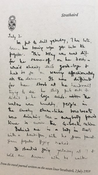 1959ರ ಜುಲೈ ತಿಂಗಳಿನಲ್ಲಿ ರಾಮಾನುಜನ್ ಮೊದಲ ಬಾರಿ ಹಡಗಿನಲ್ಲಿ ನ್ಯೂಯಾರ್ಕಿಗೆ ಪ್ರಯಾಣ ಬೆಳೆಸುತ್ತಾರೆ. ಈ ಇಪ್ಪತ್ತೆಂಟು ದಿನಗಳ ಪ್ರಯಾಣವನ್ನು, ಅಲ್ಲಿ ಸಿಗುವ ವ್ಯಕ್ತಿಗಳನ್ನು ತಮ್ಮದೇ ಕುತೂಹಲಭರಿತ ಶೈಲಿಯಲ್ಲಿ ಚಿತ್ರಿಸುತ್ತಾರೆ. ತಾಂತ್ರಿಕ ಕಾರಣಗಳಿಂದ ಅವರಿದ್ದ ಹಡಗು ಪ್ಯಾರಿಸ್ಸಿನ ಬಂದರಿನಲ್ಲಿ ನಾಲ್ಕು ದಿನ ತಂಗುತ್ತದೆ. ಹೀಗಾಗಿ ದಾರಿಮಧ್ಯ ಪ್ಯಾರಿಸ್ ನೆಲದ ದರ್ಶನವೂ ಅವರಿಗಾಗಿದೆ. ತಾವಿದ್ದ ಹಡಗನ್ನು ತೇಲುವ ದ್ವೀಪಕ್ಕೆ ಹೋಲಿಸುವ ಅವರು “I seem to invite snubs even from waiters- it must be my scared look” ಎನ್ನುತ್ತಾರೆ.