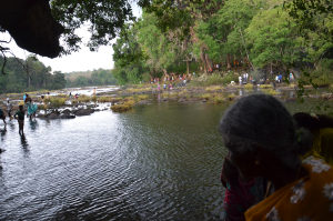 ಅಕೋ ಅಲ್ಲಿ ನೋಡಿ ಕಂಠಪೂರ್ತಿ ಕುಡಿದ ಜೇನುಕುರುಬ ಮುದುಕಿಯೊಬ್ಬಳು ನದಿಯಲ್ಲಿ ಡ್ಯಾನ್ಸ್ ಮಾಡಲು ಹೋಗಿ ಜಾರಿ ಬಿದ್ದು ನದಿಯನ್ನೇ ಬೈಯುತ್ತಾ ಮತ್ತೆ ಕುಣಿಯತೊಡಗುವಳು. ಅದಾ ಇಲ್ಲಿ ನೋಡಿ, ತಂದೆಯೊಬ್ಬನ ಹೆಗಲ ಮೇಲೆ ಕುಳಿತು ನದಿ ದಾಟುತ್ತಿದ್ದ ಜೇನುಕುರುಬ ಮಗುವೊಂದರ ಹೊಸಾ ಚಪ್ಪಲಿಯೊಂದು ಕಾಲು ಜಾರಿ ನದಿಯ ನೀರಿಗೆ ಬಿದ್ದು ತೇಲುತ್ತಾ ದೋಣಿಯಂತೆ ಕಣ್ಣ ಮರೆಯಾಗುವುದು. ಅದಾ ಇನ್ನೊಂದು ಕಡೆ ಕೈಗೆ ಕೈ ಕೋಸಿಕೊಂಡು ನಡೆಯುವ ಜೇನುಕುರುಬರ ಎಳೆಯ ಜೋಡಿಯೊಂದು ಕೈಯಲ್ಲಿ ಬಣ್ಣ ಬಣ್ಣದ ಐಸ್ ಕ್ಯಾಂಡಿ ಹಿಡಿದುಕೊಂಡು ಒಬ್ಬರನ್ನೊಬ್ಬರು ತಿಂದೇ ಬಿಡುವ ಹಾಗೆ ಆಸೆಯಿಂದ ನೋಡುತ್ತಾ ನದಿ ದಾಟುವುದನ್ನೇ ಮರೆತು ಬಿಟ್ಟಿರುವರು.