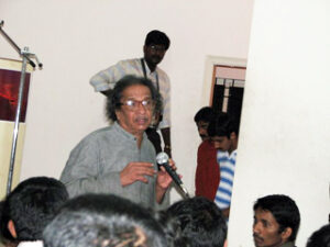 ಸರಿಯಾದ ಸಮಯಕ್ಕೆ ಎಂದಿನಂತೆ ಆಟೋದಿಂದ ಇಳಿದ ಕಿ.ರಂ. ಅವರನ್ನು ನಾನು, ವಿಜಯಮ್ಮ ಬರಮಾಡಿಕೊಂಡೆವು. ತುಂಬಾ ಬಳಲಿದಂತಿದ್ದ ಅವರ ಮುಖದಲ್ಲಿ ಯಾವತ್ತಿನ ಗೆಲುವಿರಲಿಲ್ಲ. ಇವತ್ತು ಇಲ್ಲಿಗೆ ಮಾತಾಡಲು ಬರುವುದೇ ಅನುಮಾನವಿತ್ತು ಅಂದರು. ಜೊತೆಗಿದ್ದ ರಂಗನಾಥ್, ‘ಅವರಿಗೆ ಗ್ಯಾಸ್ಟ್ರಿಕ್ ತೊಂದರೆಯಿಂದ ಉಸಿರುಗಟ್ಟಿತ್ತು… ತುಂಬಾ ಒದ್ದಾಡುತ್ತಿದ್ದರು. ಬೆಳಗಿನಿಂದ ಏನೂ ತಿಂದಿಲ್ಲ’ ಅಂದರು. ನಮಗೆ ತೀರಾ ಕೆಡುಕೆನಿಸಿತು. ಕಾಫಿ ತರಿಸಿ, ತಕ್ಷಣ ಇಡ್ಲಿ, ಜ್ಯೂಸ್ ತರಿಸಲು ವ್ಯವಸ್ಥೆ ಮಾಡಿದೆ. ಮೈಕಿನ ಮುಂದೆ ನಿಂತು ಚಡಪಡಿಸುತ್ತಿದ್ದ ಸಭೆಗೆ ಇನ್ನು ಕೆಲ ನಿಮಿಷದಲ್ಲಿ ಕಾರ್ಯಕ್ರಮ ಶುರುವಾಗುವುದಾಗಿ ಹೇಳಿದೆ, ಮನಸ್ಸಿನಲ್ಲಿ ಹೆಂಡತಿ ಸತ್ತ ನಂತರ ಕಿ.ರಂ. ಆರೋಗ್ಯಕ್ಕೆ ಸಿಕ್ಕಬೇಕಾದ ಗಮನ ಅಗತ್ಯವಾಗಿದ್ದ ಕಾಳಜಿ ಸಿಗದಿದ್ದರ ಬಗ್ಗೆ ಯಾಕೋ ತುಂಬಾ ಬೇಜಾರಾಯ್ತು. ವೃದ್ಧಾಪ್ಯದಲ್ಲಿ ಒಂಟಿ ಹಕ್ಕಿಗಳ ಕಷ್ಟದ ಬಗ್ಗೆ ಮನಸ್ಸು ವಿಷಾದಗೊಂಡಿತು. ಜೊತೆಗೆ ಇಂಥ ಸ್ಥಿತಿಯಲ್ಲಿ ಇವರಿಗೆ ಉಪನ್ಯಾಸದ ಕೆಲಸ ಹಚ್ಚುವುದು ತಪ್ಪಲ್ಲವೇ ಅನ್ನುವ ದ್ವಂದ್ವ. ಹಿಂದಿನ ವಾರ ಗೌರಿ ತಮ್ಮ ತಂದೆ ಲಂಕೇಶ್ ಬಗ್ಗೆ ಮಾತನಾಡುತ್ತ ತುಂಬಾ ಭಾವುಕಗೊಂಡು ಕಣ್ಣೀರು ಹಾಕಿದ್ದಾಗಲೂ ನಾವು ಅವರನ್ನು ಮಾತನಾಡುವಂತೆ ಮಾಡಿ ತಪ್ಪು ಮಾಡಿದ್ದೀವಾ ಅನ್ನುವ ಆತಂಕ ಕಾಡಿತ್ತು. ಅದನ್ನು ಸಭೆಯಲ್ಲಿ ಹೇಳಿಯೂ ಇದ್ದೆ. ಮಕ್ಕಳ ಹಾಗೆ ಹಟ ಮಾಡುತ್ತಿದ್ದ ಕಿ.ರಂ. ತಂದ ಎರಡರಲ್ಲಿ ಒಂದೇ ಇಡ್ಲಿ ತಿಂದರು. ಎಷ್ಟು ಬಲವಂತ ಮಾಡಿದರೂ ಜ್ಯೂಸು ಬೇಡವೆಂದು ಸಭೆಗೆ ಹೊರಟೇಬಿಟ್ಟರು. ಏನೂ ಮಾತನಾಡದೆ ಸಭೆಗೆ ಕಿ.ರಂ.ರನ್ನು ಸ್ವಾಗತಿಸಿ ಭಾಷಣಕ್ಕೆ ಅನುವು ಮಾಡಿಕೊಟ್ಟೆ. ಮೊದಲಿಗೆ ಸುರೇಂದ್ರನಾಥ್ ‘ಜೋಗಿ’ ಪದ್ಯ ಓದಿದ ನಂತರ ಕಿ.ರಂ. ತಮ್ಮ ಯಾವತ್ತಿನ ಹಿಂದೂಸ್ಥಾನಿ ಸಂಗೀತದ ಶೈಲಿಯ ಭಾಷಣವನ್ನು ಸಣ್ಣದಾಗಿನ ತಮ್ಮ ಧ್ವನಿಯಲ್ಲಿ ಆರಂಭಿಸಿದರು: ‘ಬೇಂದ್ರೆ, ಕಾರಂತ, ಕುವೆಂಪು, ಅಡಿಗ ಇಂಥ ಜೀನಿಯಸ್ ಗಳು ಭಾಷೆಯ ಸಾಧ್ಯತೆಗಳನ್ನು ವಿಸ್ತರಿಸಿದರು. ನಾವು ಅವರ ಬರಹಗಳ ಎದುರು ಬೇರೆ ಬೇರೆ ರೀತಿಯ ಪ್ರಶ್ನೆಗಳನ್ನಿಟ್ಟರೂ ಮತ್ತೆ ಮತ್ತೆ ನಮ್ಮನ್ನು ಹೊಸ ರೀತಿಯಲ್ಲಿ ಈ ಲೇಖಕರು ಆಹ್ವಾನಿಸುತ್ತಾರೆ. ಜೊತೆಗೆ ನಮ್ಮನ್ನು ಓದಿ ಅಂತ ಇವತ್ತಿನ ಹಲವರು ಹೇಳಿಕೊಳ್ಳುವ ಹಾಗೆ ಇವರ‍್ಯಾರೂ ಕೇಳುವುದಿಲ್ಲ. ಲೋಕ ನೋಡುವ ಹೊಸ ಶಕ್ತಿ ಇಂಥ ಜೀನಿಯಸ್ ಗಳಲ್ಲಿದೆ. ಅವರ ನೆನಪುಗಳ ಒಡನಾಟ ಬರೀ ಮೇಲುಸ್ತರದ ನೆನಪುಗಳಲ್ಲ. ಬೇಂದ್ರೆ, ಮಧುರಚೆನ್ನರ ಸ್ನೇಹ, ಬೇಂದ್ರೆ-ಬಿಎಂಶ್ರೀ ಮುಂತಾದವರ ಸ್ನೇಹ ಬೇರೆಯದೇ ಭಿನ್ನ ನೆಲೆಗಳಲ್ಲಿ ನಮ್ಮ ಭಾಷೆಗೆ ಕಸುವುಕೊಟ್ಟ ವಿಷಯಗಳು. ಕಾಲವೆನ್ನುವುದು ನಾವು ಮಾಡಿಕೊಳ್ಳೋ ವಿಭಜನೆ. ಬೇಂದ್ರೆಯ ಜೋಗಿ ಕವಿತೆ ತನ್ನ ಅರ್ಥ ಸಾಧ್ಯತೆ ಮೂಲಕ ಎಲ್ಲ ಕಾಲಕ್ಕೂ ಪ್ರಸ್ತುತ ವಾಗುತ್ತದೆ. ಅದೇ ಆ ಕವಿತೆಯ ಗುಣ. ಅರ್ಥವೆನ್ನುವುದು ಸಿಕ್ಕಿಬಿಟ್ಟರೆ ಅದು ಕವಿತೆ ಹೇಗಾಗುತ್ತದೆ. ಅದಕ್ಕೇ ಕವಿಯೊಬ್ಬ ಒಂದು ಕಾಲದವನಲ್ಲ ಅವನು ಎಲ್ಲ ಕಾಲದವನು. ಎಲ್ಲಾ ಕಾಲಕ್ಕೂ ಸಲ್ಲುವವನು. ಬೇಂದ್ರೆ ಗುರುವಿಲ್ಲದ ಚೈತನ್ಯ ಅಥವಾ ಯಾರನ್ನ ಬೇಕಾದರೂ ಗುರುವಾಗಿ ಸ್ವೀಕರಿಸಬಲ್ಲವರಾಗಿದ್ದರು. ಬೇಂದ್ರೆಗೆ ಅನಂತ ವಿಶ್ವವೇ ಒಂದು ತತ್ವ. ಅಂಥ ವಿಶ್ವವನ್ನು ಪರಿಭಾವಿಸುವ ಬೇಂದ್ರೆಯ ಕೃತಿಗಳಲ್ಲಿ ಮೈ ಪಡೆದಿದೆ ಬೇಂದ್ರೆಯವರ ಆರಂಭಿಕ ಕವಿತೆ ‘ಪ್ರಳಯ ಸೃಷ್ಟಿಯಲ್ಲೇ’ ಈ ವಿಶ್ವತತ್ವ ಮೈ