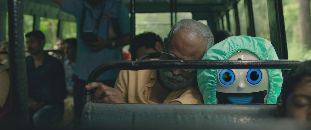 ಈ ಕಥೆಯು ಅನಂತ ಪಲಕುಗಳ ಕಾಪಿ ರಾಗದಂತೆ ಕಾಡುತ್ತದೆ. ಕಲಿತು ಪಟ್ಟಣದಲ್ಲಿ ಕೆಲಸಕ್ಕೆ ಸೇರುವ ಮಕ್ಕಳ ತಂದೆ ತಾಯಿಯಂದಿರ ನೋವಿನ ಶಾಯರಿಯಿದು. ವಯೋ ಸಹಜ ಗಜಿ ಬಿಜಿಗಳು ಬಾಂಬೆಯ ಲೋಕಲ್ ಟ್ರೈನ್ನಲ್ಲಿನ ಜನರಂತೆಯೇ ಮನದಲ್ಲಿ ತುಂಬಿದ್ದರೂ ಅವನ್ನೆಲ್ಲಾ ಮೀರಿ ಪ್ರೀತಿಯೊಂದಿರೆ ಸಾಕು ಜೀವಕ್ಕೆ ಎಂದು ಬದುಕುವ ಲೋಕದ ಎಲ್ಲಾ ತಂದೆ ತಾಯಿಯರ ಅಂತರಾಳವಿದು. ಚಿತ್ರದ ತುಂಬೆಲ್ಲಾ ಭಾವನಾತ್ಮಕ ಅಭಿವ್ಯಕ್ತಿ ಹರಡಿಕೊಂಡಿದೆ. ವಿಶೇಷತಃ ಭಾಸ್ಕರನ್ರ ಮುಗ್ಧತೆ. ಅವರು ಕುಂಜಪ್ಪನಿಗೆ ಲುಂಗಿ ಧಾರಣೆ ಮಾಡುವುದು ಮತ್ತು ವಸ್ತ್ರವ ಹೊಲಿಸುವುದು, ಜ್ಯೋತಿಷ್ಯರ ಬಳಿ ಅದರ ಭವಿಷ್ಯವ ಕೇಳುವುದು, ಮಳೆಯಲ್ಲಿ ನೆನೆಯುತ್ತಾ ಒಣಗಿದ ಬಟ್ಟೆಗಳನ್ನು ತೆಗೆಯುತ್ತಿದ್ದರೆ ಅನಾರೋಗ್ಯ ಕಾಡಬಹುದು ಎಂಬ ಆತಂಕವ ವ್ಯಕ್ತಪಡಿಸುವುದು ಹೀಗೆ ಮಗು ಮನಸ್ಸಿನ ನಿಷ್ಕಲ್ಮಶ ಭಾವ ಪ್ರಸ್ತುತತೆ ಅವರದ್ದು. ನಾನು ನನ್ನ ಯಜಮಾನರ ಆಜ್ಞಾ ಪಾಲಕ. ಅವರಿಗೆ ತೊಂದರೆಯನ್ನು ಉಂಟು ಮಾಡುವವನಲ್ಲ, ಕೇಡು ಬಯಸುವವನಲ್ಲ ಎನ್ನುತ್ತಾ ಪದೇ ಪದೇ ಕುಂಜಪ್ಪನ್ ಹೇಳುವ ಮಾತುಗಳೂ ಕೂಡ ಮನುಷ್ಯನ ಕೆಟ್ಟ ಮುಖಕ್ಕೆ ಕಪಾಳ ಮೋಕ್ಷದಂತಿದೆ. ನನಗೆ ಭಾವನೆಗಳು ಇಲ್ಲ ಎನ್ನುತ್ತಾ ಜೀವಿಸುವ ಕುಂಜಪ್ಪ ಹೃದಯವಿರುವವರಿಗಿಂತಲೂ ಮಿಗಿಲು ಎನಿಸಿಕೊಳ್ಳುತ್ತಾನೆ. ಈ ಚಿತ್ರದ ಕಥೆ ಡಾರ್ಕ್ ಕಾಮಿಡಿ ವರ್ಗಕ್ಕೂ ಸೇರುತ್ತದೆ. ಕುಂಜಪ್ಪನ್ನ ಜಾತಿ ಯಾವುದು ಎಂದು ಪ್ರಶ್ನಿಸುವ ಜನ, ಸುಬ್ರಮಣ್ಯನ್ ಮಾತನಾಡುತ್ತಿದ್ದಾಗಲೇ ಸಂಪರ್ಕ ಕಡಿತಗೊಂಡಾಗ ಭಾಸ್ಕರನ್ ‘ಮಕ್ಕಳು ಯಾವಾಗ ಮನೆಗೆ ಬರುತ್ತೀರೆಂದು ಕೇಳುವಾಗಲೇ ಸಿಗ್ನಲ್ ಹೋಗುತ್ತದೆ’ ಎನ್ನುವುದು, ಪ್ರಸನ್ನ ಫೇಸ್ಬುಕ್, ವಾಟ್ಸಪ್ಪ್, ಗೂಗಲ್ನಲ್ಲಿ ಲಭ್ಯವಿಲ್ಲ ಆದ್ದರಿಂದ ಆ ವ್ಯಕ್ತಿ ಈ ಜಗತ್ತಿನಲ್ಲೇ ಇಲ್ಲ ಎಂದು ಕುಂಜಪ್ಪನ್ ಹೇಳುವುದು ಹೀಗೆ ಹಲವು ಕಹಿ ಗುಳಿಗೆಗಳಿಗೆ ಸಿಹಿಯ ಲೇಪನ ನೀಡಿ ತೋರಿಸಲಾಗಿದೆ. ಈ ಕಥಾನಕದಲ್ಲಿರುವ ಸರಳ ಹಾಸ್ಯವೂ ಯಥೇಚ್ಚವಾಗಿ ನಗು ತರಿಸುತ್ತದೆ. ಟಿವಿ ಚಾನೆಲ್ನವರು ಬಂದು ಭಾಸ್ಕರನ್ರನ್ನು ಉದ್ದೇಶಿಸಿ “ಇದಾ ರೋಬೋಟ್” ಎನ್ನುವುದು, ಅವರ ಸಂಗೀತಕ್ಕೆ ದನಗಳು ಕಿರಿಕಿರಿಗೊಂಡು ಆಕ್ರಮಣಶಾಲಿತನ ತೋರಿಸುವುದು, ರೋಬೋಟ್ಗೆ ಕುಂಜಪ್ಪನ್ ಎಂದು ನಾಮಕರಣ ಮಾಡುವ ಪರಿ ಇಂತಹ ಹಲವು ದೃಶ್ಯಗಳು ಹೃದಯವ ಹಗುರಗೊಳಿಸುತ್ತದೆ.