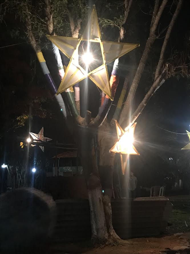 ಆ ಹಳೆಯ ದೊಡ್ಡ ಮರದ ಕೆಳಗೆ ಕಣ್ಣಿಗೆ ತಂಪನ್ನೀಯುತ್ತಾ ಒಂದು ಎಣ್ಣೆಯ ಮಣ್ಣಿನ ದೀಪ ಉರಿಯುತಿತ್ತು. ಅದರ ಮುಂದೆ ಬಣ್ಣಬಣ್ಣದ ನಿರಿಗೆಯ ಲಂಗ ತೊಟ್ಟು, ಎದೆಮೇಲಿಂದ ಓಡ್ನಿಯನ್ನು ತಂದು ತಲೆಮುಸುಕು ಹೊದ್ದಿದ್ದ ವಯಸ್ಸಾದ ದಪ್ಪನೆಯ ಹೆಂಗಸೊಬ್ಬರು ಪೂಜಾ ಸಾಮಾಗ್ರಿಯ ತಟ್ಟೆ ಹಿಡಿದು ನಿಂತ ತನ್ನ ಮೊಮ್ಮಗಳ ಪಕ್ಕದಲ್ಲಿ ಬಗ್ಗಿ ಏನನ್ನೋ ಮಾಡುತ್ತಿದ್ದರು. ಅದೇನೆಂದು ನಾವೂ ಅಲ್ಲಿ ಇಣುಕಿ ನೋಡಿದೆವು.
