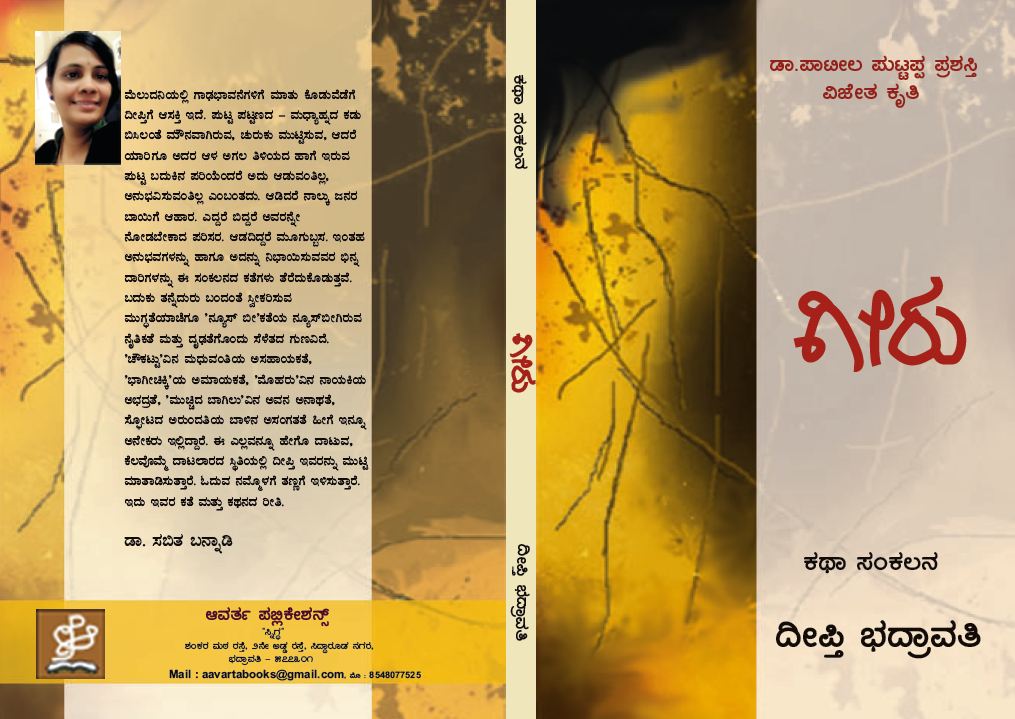 ಕಥೆಗಾರ್ತಿ ದೀಪ್ತಿ ಭದ್ರಾವತಿಯವರ ಎರಡನೆಯ ಕಥಾ ಸಂಕಲನ “ಗೀರು” ಹದಿನಾಲ್ಕು ಕಾಡುವ ಕಥೆಗಳನ್ನು ಸಂಕಲನವಾಗಿಸಿ ಸ್ವತಃ ಪ್ರಕಟಣೆಯ ಹೊಣೆ ಹೊತ್ತಿದ್ದಾರೆ. ಶುಭಾಶಯಗಳು.