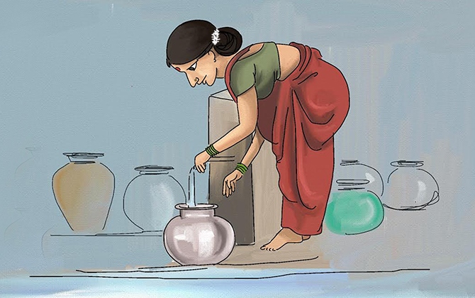 “ಅಷ್ಟರಾಗ ಮುಗಸರಿ… ಹೂಯ್ಯಿ ಅಂತ ಬಚ್ಚಲಕ್ಕ ನೀರ ಹೋಯ್ದರ ಏನ ಬಂತ… ಹತ್ತ ದಿವಸಕ್ಕೊಮ್ಮೆ ನಳಾ ಬರ್ತದ… ಎರಡ ತಂಬಗಿ ನೀರ ಹಾಕ್ಕೊಂಡ ಸಬಕಾರ ಹಚಗೊಂಡ ಮೂರ ತಂಬಗಿ ನೀರ ಹಾಕ್ಕೊಂಡ ಹೊರಗ ಬರ್ರಿ” ಅಂತ ಹೇಳೋಕಿನೂ ಅಕಿನ.