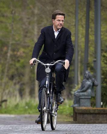 (ಪ್ರಧಾನಮಂತ್ರಿ ಮಾರ್ಕ್ ರುಟ್ಟ ಸೈಕಲ್ ಮೇಲೆ)
