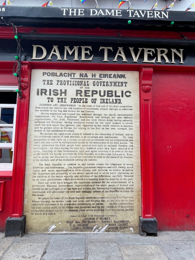 ಇಂದಿಗೂ ಬಹಳಷ್ಟು ಪಬ್‌ಗಳು ಹೊರಗೋಡೆಗಳ ಮೇಲೆ ಐರ್ಲೆಂಡ್ ಸಂವಿಧಾನದ ಪುಟಗಳು, ಕ್ರಾಂತಿಕಾರಿ ಒಕ್ಕಣಿಕೆಗಳು ಬರೆಯಲ್ಪಟ್ಟಿವೆ. ಐರಿಶ್ ಸ್ವಾತಂತ್ರ್ಯ ಹೋರಾಟದ ದಾಖಲೆಗಳನ್ನು ಉಳಿಸಿಕೊಳ್ಳಲಾಗಿದೆ. ಹಳತಾದ ಗೋಡೆಗಳ ಉಸ್ತುವಾರಿ ಕೂಡ ಸಾಧ್ಯವಾದಷ್ಟು ಮಟ್ಟಿಗೆ ಮೂಲ ಧಾತುಗಳಲ್ಲೇ ರಿಪೇರಿ ಮಾಡಲಾಗುತ್ತದೆ. ಇತಿಹಾಸ ಅಳಿಯದಂತೆ ಕಾಪಾಡಿಕೊಳ್ಳಲಾಗುತ್ತಿದೆ. ಸಾಂಸ್ಕೃತಿಕ ಊಟ, ತಿನಿಸುಗಳನ್ನೇ ಸರಬರಾಜು ಮಾಡಲಾಗುತ್ತೆ. ಬ್ರಿಟಿಷ್ ಸರಕಾರದ ದಬ್ಬಾಳಿಕೆಯ ಉರಿಯ ಕಿಡಿಗಳ ಕುರುಹುಗಳೆಲ್ಲ ಅಲ್ಲಿ ಹಾಸು ಹೊಕ್ಕಾಗಿ ಹರಡಿವೆ. ಬಹಳಷ್ಟು ಪಬ್‌ಗಳಲ್ಲಿ ಹಳೆಯ ಚಿತ್ರಗಳು, ವಾರ್ತೆಗಳ ತುಣುಕು, ದಾಖಲೆಪತ್ರಗಳು, ಜಾಗತಿಕ ಘಟನೆಗಳನ್ನೆಲ್ಲ ಅಲಂಕಾರಿಕವಾಗಿ ಜೋಡಿಸಿಟ್ಟಿದ್ದಾರೆ. ಐರ್ಲೆಂಡಿನ ಆತ್ಮ ಅಡಗಿರುವುದೇ ಈ ಹಳೆಯ ಪಬ್ ಗೋಡೆಗಳ ನಡುವೆ ಎಂದು ಐರಿಶರಿಗೆ ಚೆನ್ನಾಗಿ ಅರಿವಿದೆ.