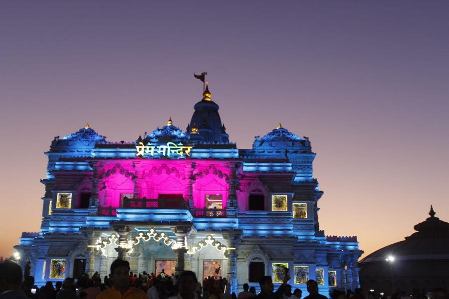 ಇಡೀ ಪ್ರೇಮ ಮಂದಿರವನ್ನು ಬಿಳಿಯ ಅಮೃತ ಶಿಲೆಯಿಂದ ನಿರ್ಮಿಸಲಾಗಿದೆ. ಬಣ್ಣ ಬದಲಾಯಿಸುವ ವಿದ್ಯುತ್ ದೀಪಾಲಂಕಾರದಲ್ಲಿನ ಪ್ರೇಮ ಮಂದಿರ ಅದ್ಭುತವಾಗಿ ಕಾಣುತ್ತದೆ. ರಾಧಾ ಕೃಷ್ಣರ ತುಂಬ ಸುಂದರವಾದ ಮೂರ್ತಿಗಳಿವೆ. ಅವುಗಳನ್ನು ರತ್ನ ಖಚಿತವಾಗಿ ಅಲಂಕರಿಸಿದ್ದಾರೆ. ಸಾಕ್ಷಾತ್ ರಾಧಾ ಕೃಷ್ಣರೇ ಧರೆಗಿಳಿದಂತೆ ಆ ಮಂದಿರವನ್ನು ಮತ್ತು ಅದರ ಪರಿಸರವನ್ನು ಚಂದವಾಗಿರಿಸಿದ್ದಾರೆ. ಅವತ್ತು ವಿಪರೀತ ಚಳಿ ಬೇರೆ. ಸಂಜೆ ಎಂಟರವರೆಗೂ ಅಲಂಕೃತ ಬೆಳಕಿನ ನಡುವೆ ನಾವು ಅಲ್ಲೆ ಇದ್ದೆವು. ನಂತರ ಯಾವುದೋ ಹೊಟೆಲ್ನಲ್ಲಿ ವಾಸ್ತವ್ಯ ಕೂಡ ಆಯಿತು.