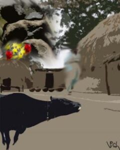 ಹೀಗೆ ದಿನ ಹೋಗುತ್ತಿರಲು ಆ ಬಿಳಿಎಮ್ಮೆ ಗಬ್ಬ ಕಟ್ಟಿತು. ಹಾಯ್ಗುಳಿ ಇದಕ್ಕಾಗಿಯೇ ಕಾಯುತಿತ್ತೋ ಏನೋ. ಸುಮ್ಮನಿರುವ ಗುಣವೇ ಅದರದಲ್ಲವಲ್ಲ. ಎಮ್ಮೆ ಕರು ಹಾಕುವುದನ್ನೇ ಕಾಯುತ್ತ ಇತ್ತು ಬಹುಶಃ. ದಿನ ತುಂಬಿದ ಎಮ್ಮೆ  ಕರು ಹಾಕಿತು. ಎಂತ ಕರು? ಗುಡ್ಡವ, ಹೆಂಗರುವ ನೋಡಬೇಕು, ಅಷ್ಟರಲ್ಲಿ, ಆಚೆ ಕಂಡರೆ ಎಮ್ಮೆಯ ಹೊಟ್ಟೆಗಡ್ಡೆ -ಗರ್ಭಕೋಶ- ಹೊರಬಂದಿದೆ. ಕೈ ಹಾಕಿ ಹೇಗೆ ಹೇಗೆ ಒಳದೂಡಿದರೂ ಹೋಗದು. ಗೋಡಾಕ್ಟರನ್ನು ಕರೆಯಲು ಜನ ಓಡಿತು. ಅವರು ಬರುವುದರೊಳಗೆ ಎಮ್ಮೆ ಕಣ್ಣುಮೇಲೆ ಮಾಡಿ ತಲೆ ಅಡ್ಡ ಹಾಕಿಯಾಯಿತು. ಎಲ್ಲ ಮುಗಿಯಿತು ಎಂದು ಹೇಳಲಷ್ಟೇ ಡಾಕ್ಟರು ಬಂದಂತಾಯಿತು. ‘ಹೊಟ್ಟೆ ನೋವು ಸುರುವಾದೊಡನೆ ಹಾಯ್ಗುಳಿಗೊಂದು ಕಾಯಿ ಸುಳಿದಿಡಲು ಅಯ್ಯ, ಮರೆತೇ ಬಿಟ್ಟೆ. ನಾನೇನೋ ಮರೆತೆ. ನಿನಗೆ ನೆನಪಿಸಲೇನಾಯಿತು?’ ‘ನೀನು ಮರೆತೆ ಅಂತ ನಂಗೇನು ಕನಸೆ?’ ‘ಒಟ್ಟು ಕರ್ಮ’ -ವಿಧವಿಧ ಚಕಮಕಿ. ಕಂಪಿಸುವ ದುಃಖ ಒಮ್ಮೊಮ್ಮೆ ಚಕಮಕಿ ಚರ್ಚೆಯ ರೂಪದಲ್ಲಿಯೂ ಇರುತ್ತದಷ್ಟೆ?.