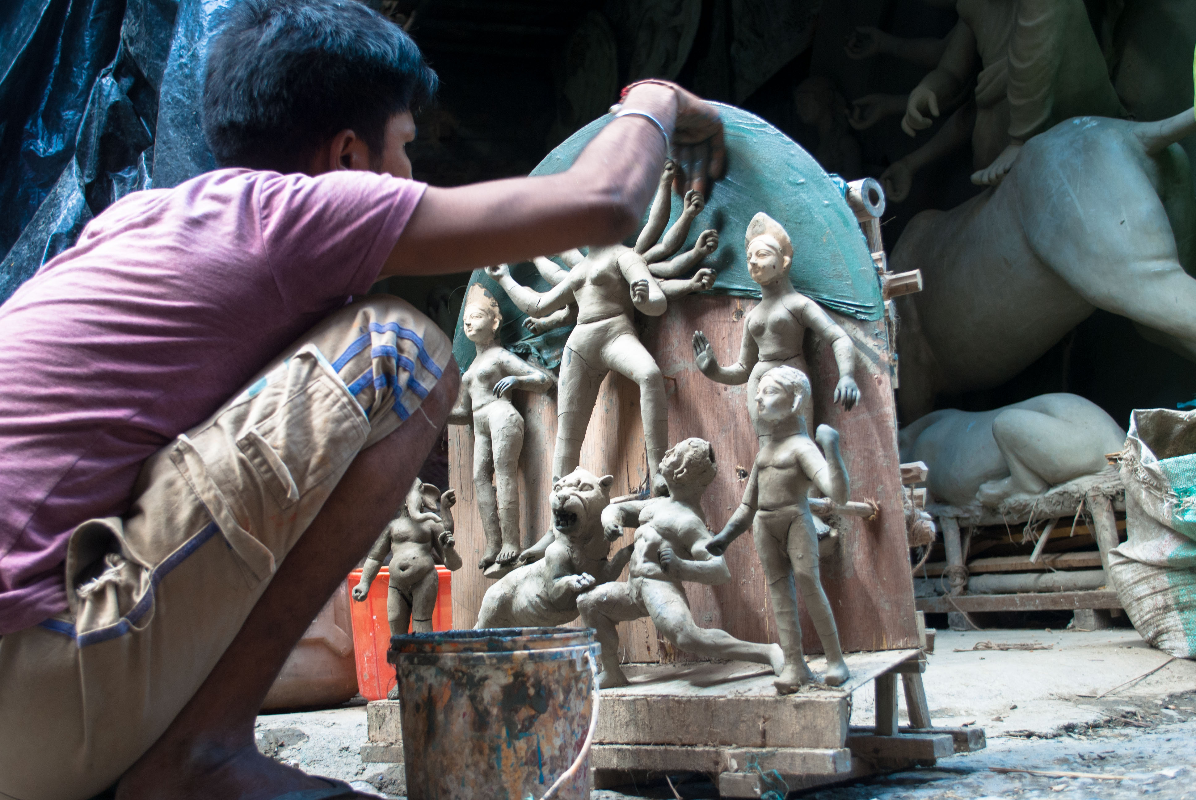 ಅಲ್ಲಿ ತಯಾರಾಗುವ, ಯಾವ ದೇಶವನ್ನೇ ಮುಟ್ಟುವ ದಸರಾ ಸಮಯದ ದುರ್ಗೆ ಕಾಳಿ ಲಕ್ಷ್ಮಿಯರ ವಿಗ್ರಹಗಳೇ ಇರಲಿ ಮಣ್ಣುಗಳ ವಿಶೇಷ ಮಿಶ್ರಣ ಪಾಕದಲ್ಲಿ ತಯಾರಾಗಬೇಕು. ಮತ್ತು ಆ ಮಣ್ಣಿನಲ್ಲಿ ಜಗತ್ತಿನ ಅತಿದೊಡ್ಡ ವೇಶ್ಯಾಕೇಂದ್ರವೆಂಬ ಖ್ಯಾತಿಯ ಕೋಲ್ಕತ್ತಾದ ಸೋನಾಗಾಚಿಯ ಮಣ್ಣನ್ನೂ ಸೇರಿಸುವುದು ಹಳೆಯ ಸಂಪ್ರದಾಯ. ಈ ಸಂಪ್ರದಾಯಕ್ಕೆ ಸಮಾಜದ ಎಲ್ಲ ಮುಖಗಳೂ ಒಂದೇ ಮಣ್ಣಿನಲ್ಲಿ ಸಮಗ್ರವಾಗಿ ಕೂಡುವುದು ಎಂಬ ಅರ್ಥ ಕೊಟ್ಟವರಿದ್ದಾರೆ. ಅಥವಾ ವೇಶ್ಯೆಯರ ಮನೆಗೆ ಭೇಟಿ ನೀಡುವವರು ತಮ್ಮ ಒಳ್ಳೆಯತನವನ್ನು ಬಾಗಿಲಲ್ಲೇ ಬಿಟ್ಟು ಒಳ ಹೊಕ್ಕುವುದರಿಂದ, ಬಾಗಿಲ ಬಳಿಯ ಮಣ್ಣು ಪುಣ್ಯದ ಮಣ್ಣೆಂದು ದೇವಿಯ ವಿಗ್ರಹಕ್ಕೆ ಬಳಸುತ್ತಾರೆ ಎಂದು ವಿವರಿಸುವವರೂ ಇದ್ದಾರೆ.