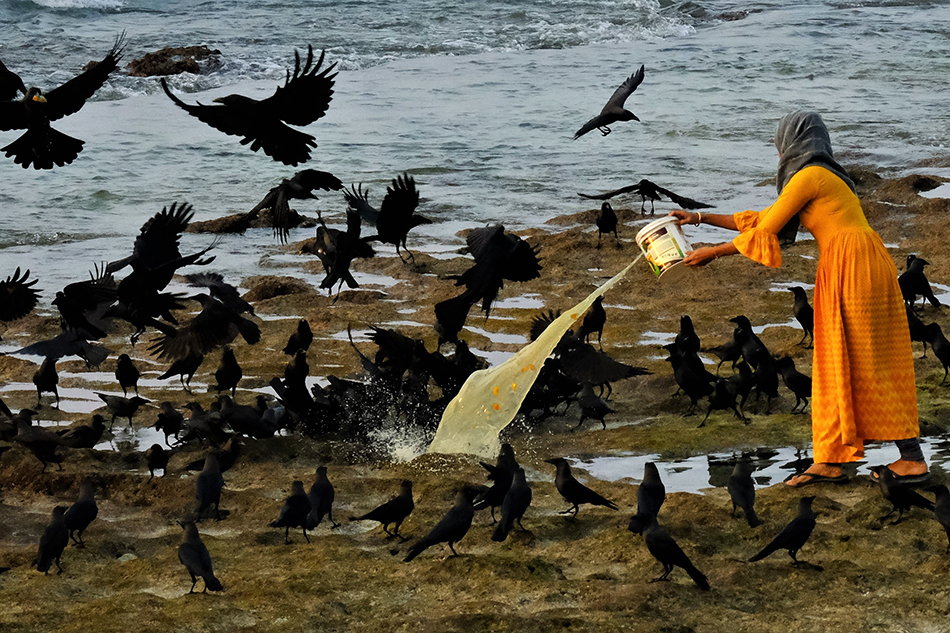 ಅಲೆಯುವ ಮನಕ್ಕೆ ಲೋಕದ ಯಾವ ಸದ್ದುಗಳೂ ಕೇಳಿಸುವುದಿಲ್ಲವಂತೆ. ಅಲೆಮಾರಿಗಳು ಲೋಕದ ಗೊಡವೆಗಿಂತ ತಮ್ಮ ತಮ್ಮ ಸ್ವವ್ಯಸನಗಳಲ್ಲೇ ಹೆಚ್ಚು ಮುಳುಗಿರುತ್ತಾರಂತೆ. ಹಾಗಾಗಿ ಅವರು ಆಯಾಸಗೊಳ್ಳದೆ ಚಲಿಸುತ್ತಲೇ ಇರುತ್ತಾರಂತೆ. ಇದು ಹಿಂದೆ ಬದುಕಿದ್ದ ಮಿತ್ರರೂ ಆಗಿದ್ದ ಹಿರಿಯರೊಬ್ಬರು ಹೇಳಿದ್ದ ಮಾತು. ಅವರ ಪ್ರಕಾರ ಅಲೆಮಾರಿಗಳಷ್ಟು ಸ್ವರತಿ ಪ್ರಿಯರು ಬೇರೆ ಯಾರೂ ಇಲ್ಲ. ಹಾಗೆಯೇ ನನ್ನ ಕಥೆಯೂ ಎಂದು ಅನಿಸುತ್ತಿತ್ತು, ಏಕೆಂದರೆ ಕಣ್ಣಿಗೆ ಪಟ್ಟಿ ಕಟ್ಟಿದ ಕುದುರೆಯಂತೆ ದ್ವೀಪದ ಕಡಲ ಪಕ್ಕದ ಸಿಮೆಂಟು ರಸ್ತೆಯಲ್ಲಿ ಸೈಕಲ್ಲು ಓಡಿಸುತ್ತಿದ್ದ ನನಗೆ ಮೊರೆಯುತ್ತಿದ್ದ ಕಡಲಿನ ಸದ್ದೂ, ಅದನ್ನೂ ಮೀರಿಸುವಂತೆ ಕಡಲ ಕಡೆಯಿಂದ ಕೇಳಿಸುತ್ತಿದ್ದ ಕಾಗೆಗಳ ಹಾಹಾಕಾರವೂ ಕೇಳಿಸಿಯೇ ಇರಲಿಲ್ಲ. ಕೇಳಿಸತೊಡಗಿದಾಗ ಸೈಕಲ್ಲು ನಿಲ್ಲಿಸಬೇಕೆನಿಸಿತು. ಸೈಕಲ್ಲು ನಿಲ್ಲಿಸಿ, ನೆಲಕ್ಕೆ ಬಗ್ಗಿಸಿ, ಬೆನ್ನಿನ ಚೀಲವನ್ನು ಅಲ್ಲೇ ನೆಲದಲ್ಲಿ ಇಳಿಸಿ ಕಡಲಿನತ್ತ ನಡೆದು ಹೋದರೆ ಕಡಲ ಬದಿಯಲ್ಲಿ ಕಾಗೆಗಳ ಹಿಂಡು. ಅವುಗಳ ನಡುವಲ್ಲಿ ಒಬ್ಬಳು ಸ್ತ್ರೀ. ಆಕೆ ಕೈಯಲ್ಲಿದ್ದ ಆಹಾರ ತ್ಯಾಜ್ಯಗಳ ಬಕೆಟ್ಟನ್ನು ಕಡಲಿಗೆ ಸುರಿಯುತ್ತಿದ್ದಳು. ಕಡಲಿಗೆ ಬೀಳುತ್ತಿದ್ದ ತ್ಯಾಜ್ಯದ ಸುತ್ತ ಕಾಗೆಗಳ ಸರಪಳಿ. ನೋಡುತ್ತಿದ್ದಂತೆ ಬೇರೆ ಯಾವ ದ್ವೀಪಗಳಲ್ಲೂ ನಾನು ನೋಡಿರದಿದ್ದ ದೊಡ್ಡ ಗಾತ್ರದ ಕೆಂಬಾರೆ ಹಕ್ಕಿಗಳು. ಒಂದಲ್ಲ ಎರಡಲ್ಲ ಹತ್ತಾರು. ಅವುಗಳೂ, ಕಾಗೆಗಳೂ, ಆ ಹೆಂಗಸೂ, ಕಡಲೂ, ಆಕಾಶವೂ ಒಂದು ರೀತಿಯ ಬೆಳಗಿನ ಆಲಸ್ಯದಲ್ಲಿ ಒಂದೇ ಚಿತ್ರದ ಹಲವು ಬಣ್ಣಗಳಂತೆ ಗೋಚರಿಸುತ್ತಿದ್ದವು. ಮನುಷ್ಯರು, ಕಾಗೆಗಳು ಮತ್ತು ಕಡಲ ಹಕ್ಕಿಗಳು ಮತ್ತು ಎಲ್ಲಿಂದಲೋ ಬಂದ ನಾನು. ಬಂದ ಕೆಲಸವನ್ನೂ ಮರೆತು, ಸೈಕಲ್ಲನ್ನೂ ಮರೆತು ಫೋಟೋ ಕ್ಲಿಕ್ಕಿಸತೊಡಗಿದೆ.