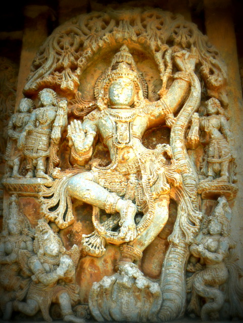 ಭಿತ್ತಿಯ ಮೇಲುಭಾಗದಲ್ಲಿ ಗೋಪುರಗಳೂ ಕಿರುಗಂಬಗಳೂ ಮೇಲುಸೂರಿನವರೆಗೆ ವಿಸ್ತರಿಸಿವೆ. ಕೆಳಭಿತ್ತಿಯ ಮೇಲೆ ದೇವಾಲಯದ ಸುತ್ತಲೂ ಆಕರ್ಷಕ ಶಿಲ್ಪಗಳಿವೆ. ಇವರಲ್ಲಿ ನಾಟ್ಯ ಗಣಪತಿ, ನಾಟ್ಯ ಸರಸ್ವತಿ, ಭೂದೇವಿಯನ್ನು ರಕ್ಕಸನಿಂದ ಕಾಪಾಡಿ ತರುತ್ತಿರುವ ವರಾಹಾವತಾರಿ ವಿಷ್ಣು, ಭೈರವ, ಕಾಳಿಂಗ ಮರ್ದನ ಕೃಷ್ಣ, ಮಹಾವಿಷ್ಣುವಿನ ಬಗೆಬಗೆಯ ರೂಪಗಳು ವಾದ್ಯಗಾರರು, ದೇವಪರಿಜನರು, ಹನುಮ ಗರುಡರು, ನರಸಿಂಹನೂ ಸೇರಿದಂತೆ ಸ್ಥಾನಕ ಅಂದರೆ ನಿಂತ ಸ್ಥಿತಿಯಲ್ಲಿರುವ ವಿಷ್ಣುವಿನ ದಶಾವತಾರರೂಪಗಳು, ತ್ರಿವಿಕ್ರಮ, ಮಹಿಷಮರ್ದಿನಿ, ನಾಟ್ಯಲಕ್ಷ್ಮಿ, ಯೋಗಾನರಸಿಂಹ ಮೊದಲಾದವರು ಕಂಡುಬರುತ್ತಾರೆ.
