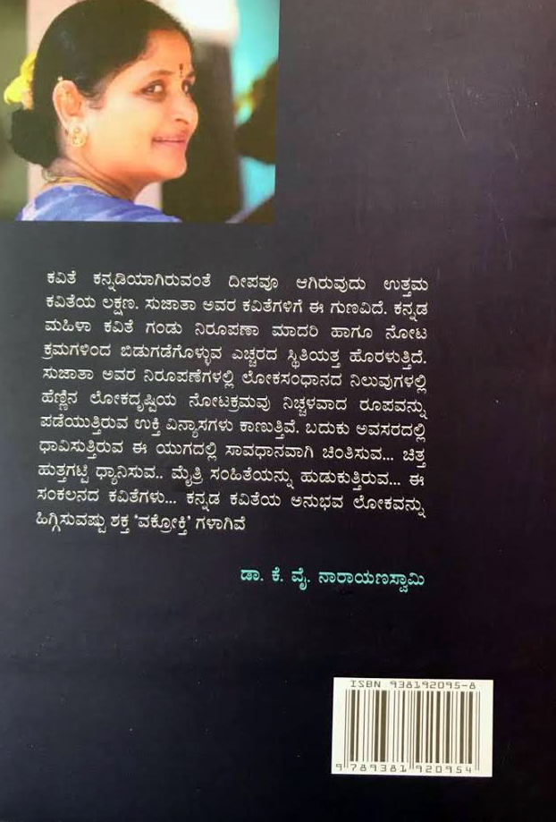 ಕನ್ನಡಕಾವ್ಯ ಪರಂಪರೆಯಲ್ಲಿ ಪುರುಷ ಲೋಕದೃಷ್ಟಿಯು ಪ್ರಧಾನವಾಗಿ ತನ್ನ ಯಾಜಮಾನ್ಯವನ್ನು ಸ್ಥಾಪಿಸಿರುವುದು ವಾಸ್ತವ. ಅಂಥ ಡಾಳಾಗಿ ಕಾಣುವ ಪರಂಪರೆಯೊಳಗೆ ಸುಪ್ತವಾಗಿ ಮಾತೃ ಸಂವೇದನೆಯ ಧಾರೆಯು ಅಂತರಗಂಗೆಯಂತೆ ಹರಿದಿದೆ. ಸುಜಾತಾರ ಕಾವ್ಯದ ನಂಟು ಈ ಧಾರೆಯಜೊತೆ ಬೆಸೆದಿದೆ. ವಾದ ಸಿದ್ಧಾಂತಗಳ ಹಠಮಾರಿತನಕ್ಕೆ ತನ್ನನ್ನು ತೆತ್ತುಕೊಳ್ಳದೇ ಹೆಣ್ತನದ ದೇಸಿ ನೆಲೆಗಳಲ್ಲಿ ಸಂಚರಿಸಿರುವ ಕಾವ್ಯತಾಜಾ ಕಸುವಿನಿಂದ ಕಂಗೊಳಿಸುತ್ತಿದೆ. ಗ್ರಾಮ್ಯ ಸೊಗಡಿನ ಜಾನಪದ ಸಂವೇದನೆಯೊಂದು ದಕ್ಕಿರುವುದು ಇಲ್ಲಿನ ಕೆಲವು ಕವಿತೆಗಳ ಶಕ್ತಿಯಾಗಿದೆ.