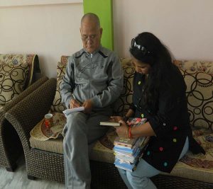 ನನ್ನದೇ ಕನಸಿನ ಅರಮನೆಯ ಸಣ್ಣ ಕೋಣೆಯೊಂದನ್ನು ಹೊಕ್ಕಿದಂತಹ ಅನುಭವ. ಎರಡೇ ನಿಮಿಷಗಳಲ್ಲಿ ಅದೇ ಸಹಾಯಕಿ ಪರಿಮಳಯುಕ್ತ, ಹಬೆಯಾಡುತ್ತಿದ್ದ ಗುಲಾಬಿ ಚಹ, ಅದರೊಂದಿಗೆ ಅಂದವಾದ ಆಕಾರವನ್ನು ಹೊಂದಿದ್ದ ಕುರುಕಲು ತಿಂಡಿ ಮತ್ತು ರುಚಿಯಾಗಿ ಕಾಣುತ್ತಿದ್ದ ಡ್ರೈ ಜಾಮೂನ್ ತಂದಿಟ್ಟು. “ ಕುಳಿತು ಚಹ ಕುಡಿಯಿರಿ. ಬರುತ್ತಾರೆ” ಎಂದು ಹೇಳಿ ಹೋದಳು. ಆಹಾ, ಆ ವಾತವರಣ, ಅಲ್ಲಿದ್ದ ಮೌನ, ಆ ಪುಸ್ತಕಗಳು ಮತ್ತು ಗುಲಾಬಿ ಚಹ ! ಅದು ಯಾವುದೋ ಲೋಕದಲ್ಲಿದ್ದೆ. ಸುಮಾರು ಎತ್ತರದ, ದುಂಡು ಮುಖದ, ಮೊಂಡು ಮೂಗಿನ, ಚಿಕ್ಕ ಚುರುಕು ಕಣ್ಣಿನ, ಸಣ್ಣಸಣ್ಣ ಬಿಳಿ ಕೂದಲಿನ ಅವರು ಬೂದು ಬಣ್ಣದ ಜಾಗಿಂಗ್ ಸೂಟ್ ಹಾಕಿಕೊಂಡು ಒಳ ಬಂದು ‘ನಮಸ್ತೆ’ ಎಂದಾಗ ಲ್ಯಾವೆಂಡರ್ ಘಮವಿದ್ದ ಅವರು ಪೂಸಿಕೊಂಡಿದ್ದ ಸೆಂಟ್ ಅಲ್ಲೊಂದು ಸ್ನೇಹಮಯ ವಾತಾವರಣವನ್ನು ಕಟ್ಟಿಕೊಟ್ಟಿತ್ತು.
